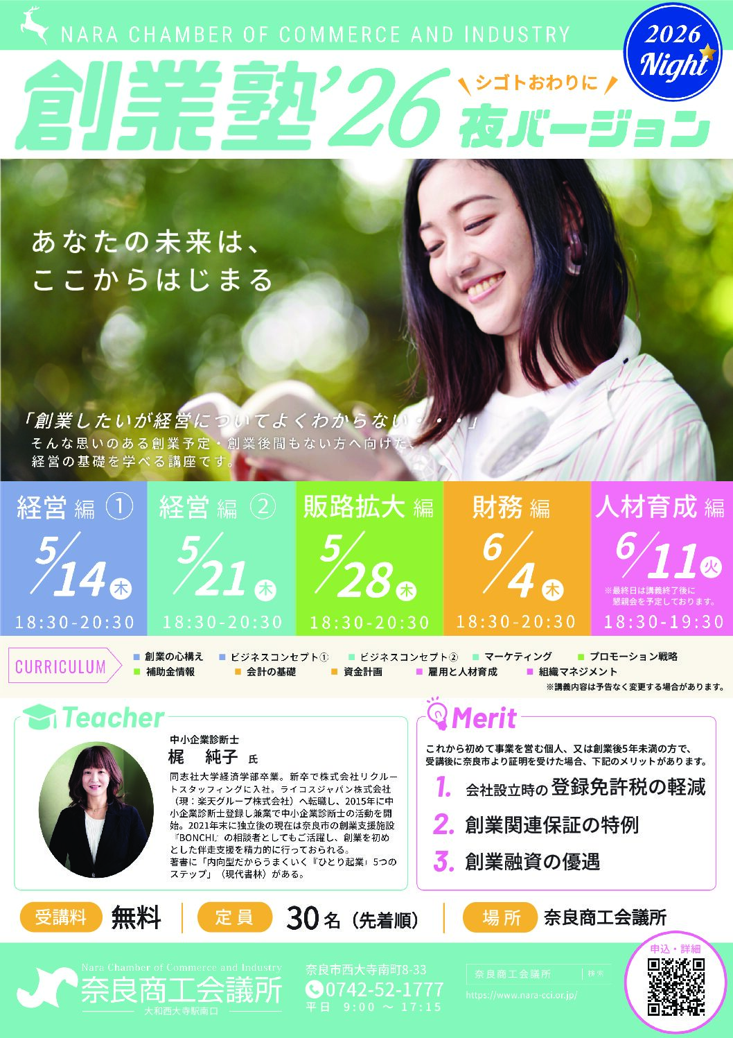 今年も奈良商工会議所「創業塾」の講師を担当させていただくことになりました。